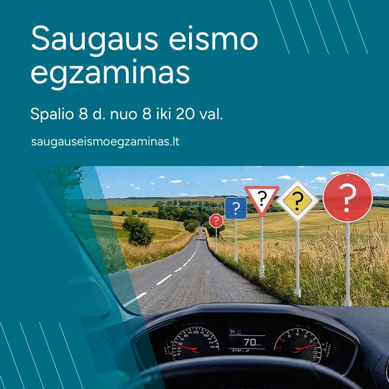 VIA Lietuva kviečia visus eismo dalyvius – tiek moksleivius, tiek patyrusius vairuotojus – dalyvauti pirmą kartą šalyje rengiamame visuotiniame, savanoriškame saugaus eismo egzamine. Tai puiki proga pasitikrinti savo žinias, prisiminti Kelių eismo taisykles ir sustiprinti atsakomybę už saugumą keliuose.